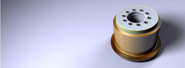 Ein Kommutator besteht aus Kupferlamellen. Die Lamellen haben eine Keilform